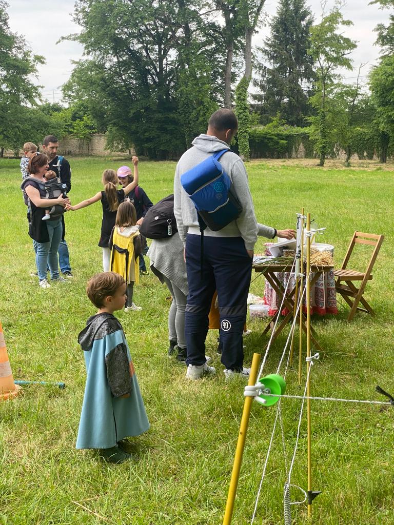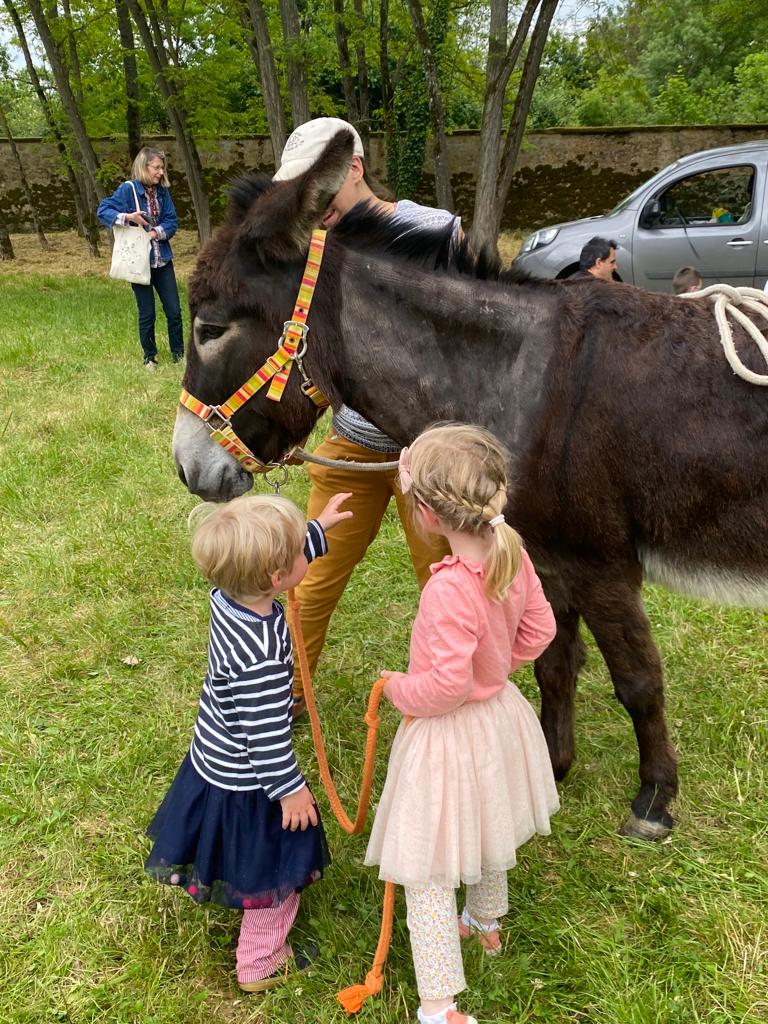 Fidèle au poste, Estelle (kid Evenementiel) était de retour pour sa chasse au trésor. Animationstoutazimut dans la haute cour avait installé plusieurs ateliers de cirque, jeux anciens et poneys mécaniques et la compagnie Pace nous a conté l’histoire de « La bête à sept têtes ». Un nouveau venu dans l’équipe d’animation, l’association Aimanimale. Emma, l’animatrice était accompagnée d’un âne et une agnelle afin de faire découvrir l’art et la manière de s’occuper de ces animaux.