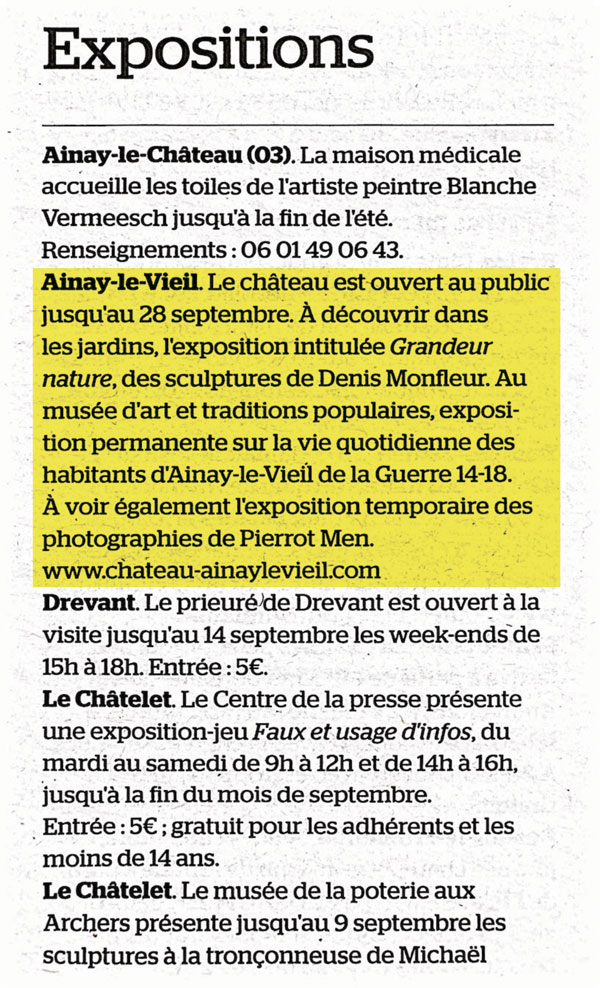 Château d'Ainay-le-Vieil - Article paru dans L'écho du Berry le 28 août 2025 - Ça se passe chez nous Rencontres et expositions