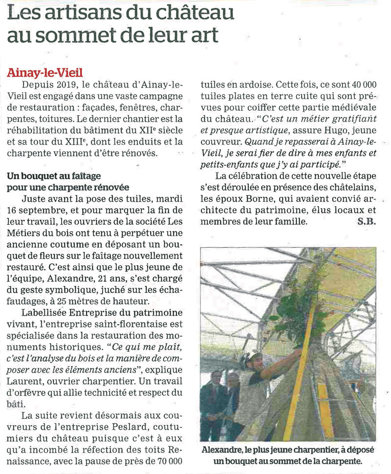 Château d'Ainay-le-Vieil - Article paru dans Le Berry républicain le 25 septembre 2025 - Les artisans au sommet de leur art