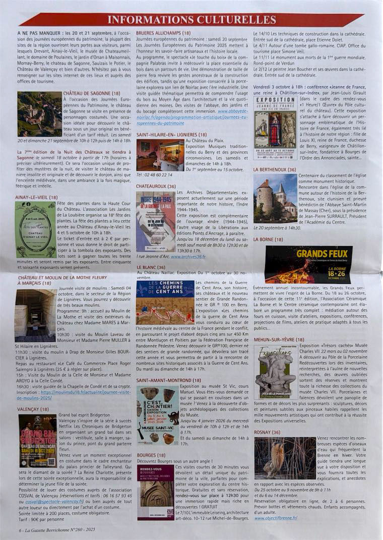 Château d'Ainay-le-Vieil - Article paru dans La gazette berrichonne de l'été 2025 - Agenda et Fête des plantes