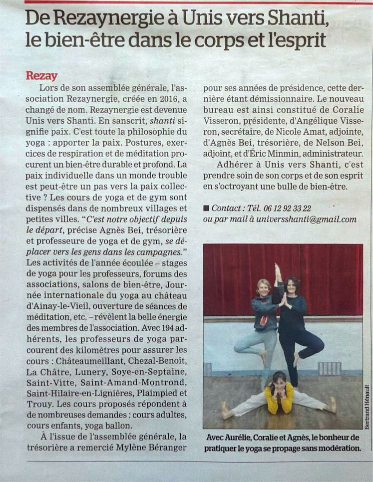 Château d'Ainay-le-Vieil - Article paru dans L'écho du Berry le 23 septembre 2025 - De Rezaynergie à Unis vers Shanti, le bien-être dans le corps et l'esprit